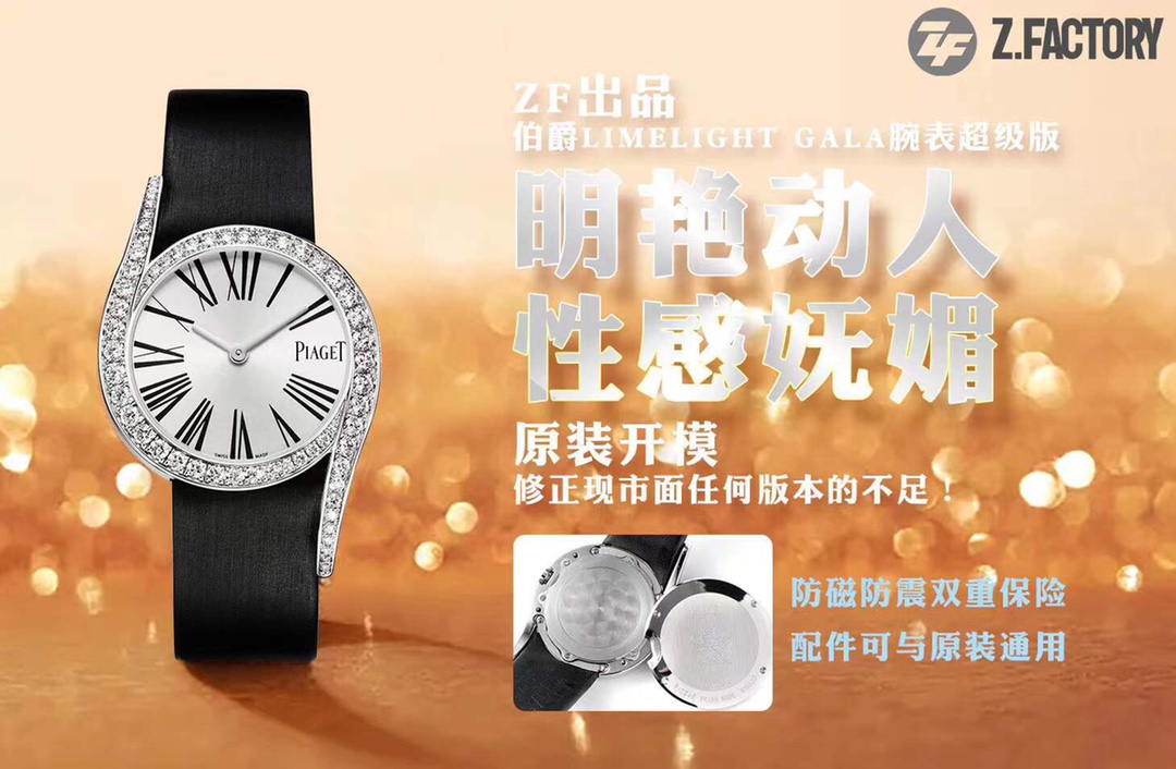 ZF Produced PiagetLimelight Gala watches Super Edition ,原装开模,修正现市面任何 Version 的不足!【精彩细节】 watches 尺寸26mmX7mm1.ZF运用一流的壳套打磨工艺,诠释Piaget elegant 气质。2.底盖的贵金属钢印清晰明朗,苍劲有力。3.底盖结构同步 Original ,采用双层防磁防震设计。4.采用 Customized version 瑞士 quartz movement movement ,续航给力,走时稳健,零返修。5.镶饰60颗明亮式切割施华洛世奇美钻(约0.92 gram 拉)。表扣镶饰单颗明亮式切割施华洛世奇美钻(约0.01 gram 拉)动人线条衬托 elegant 气质 ZF Produced 必属 exquisite !