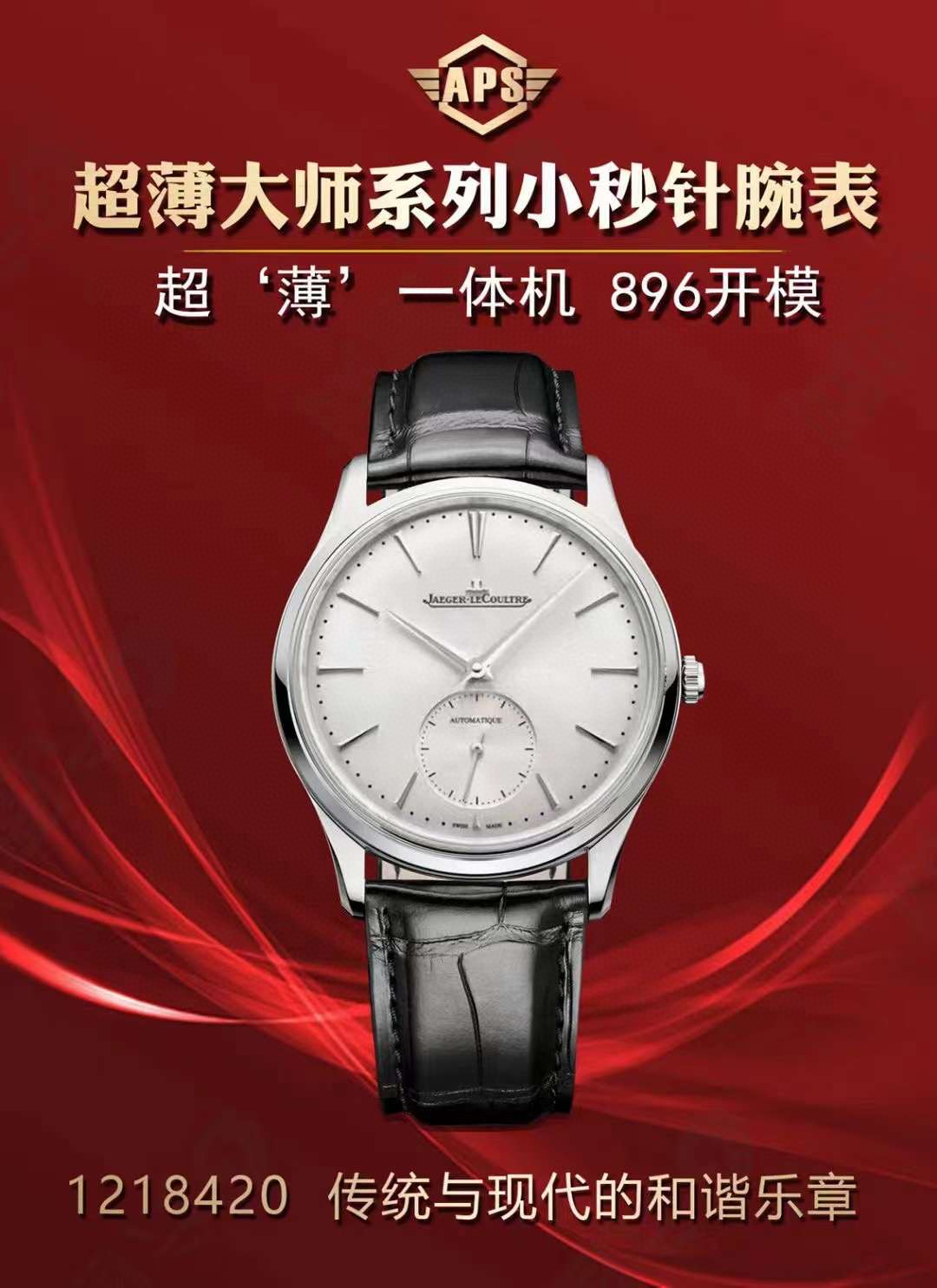 APS new product Jaeger-LeCoultre Master Collection series 1218420,传统与现代的和谐乐章。Master Ultra Thin Ultra-thin Master Collection series 小秒针 watches stainless steel 款 collocation 8.1 mm 厚的精密 Case (直径 39 mm ),内载 Ultra-thin Dandong Customized movement 896 movement 。此 Automatic mechanical movement 精准指示时、分、小秒。